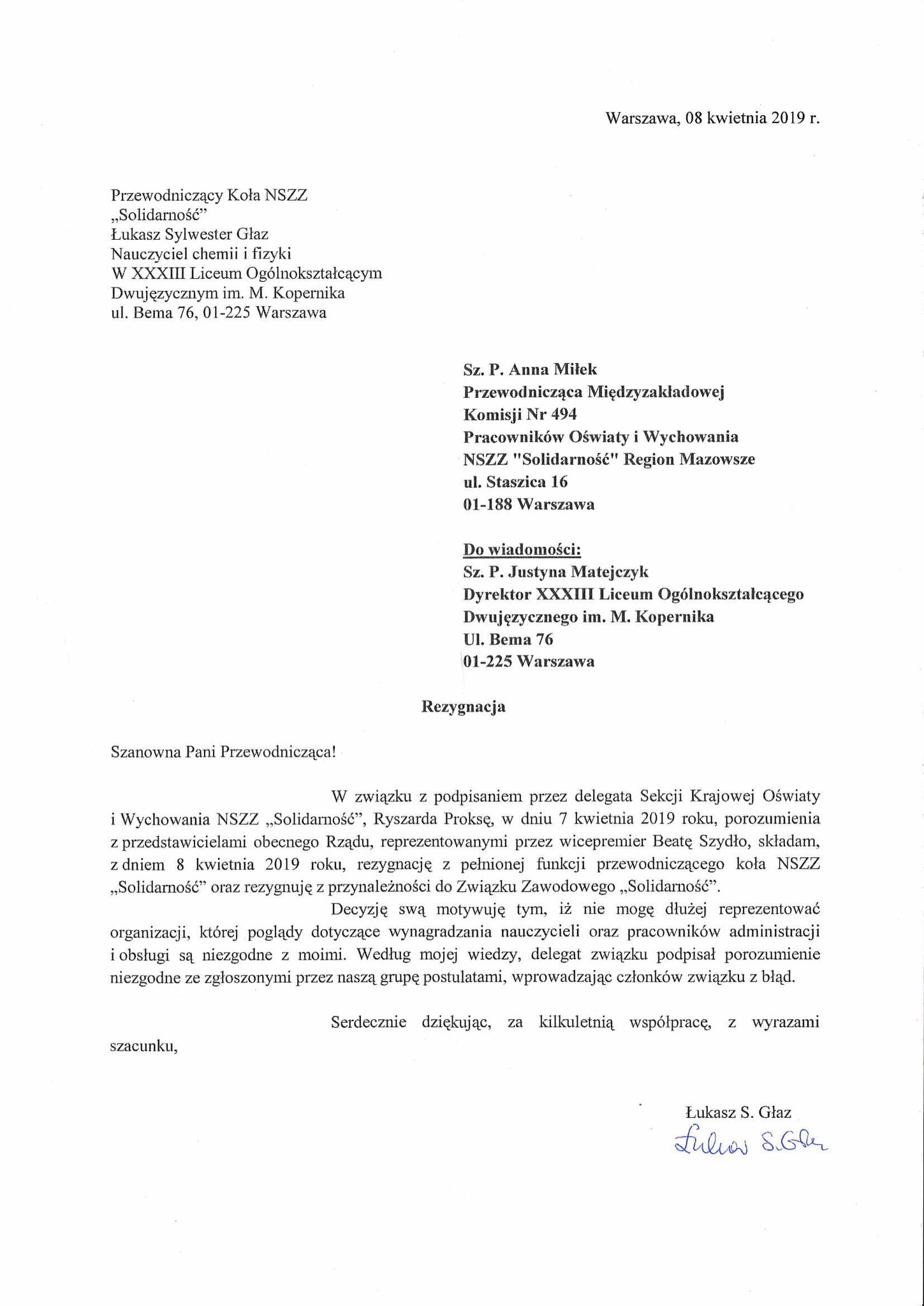 Niektóre szkoły nie tylko wystawiły oceny, ale także przeprowadziły całą procedurę klasyfikacji. Taki był nakaz dyrekcji. W mojej szkole z klasyfikacją nie zdążyliśmy. Jeśli strajk będzie trwał, dyrekcja poszuka sposobu, aby wezwać nas do klasyfikacji. Wystarczy mała przerwa w strajku, a natychmiast dostaniemy polecenie służbowe. Może to być nawet w Wielki Piątek.