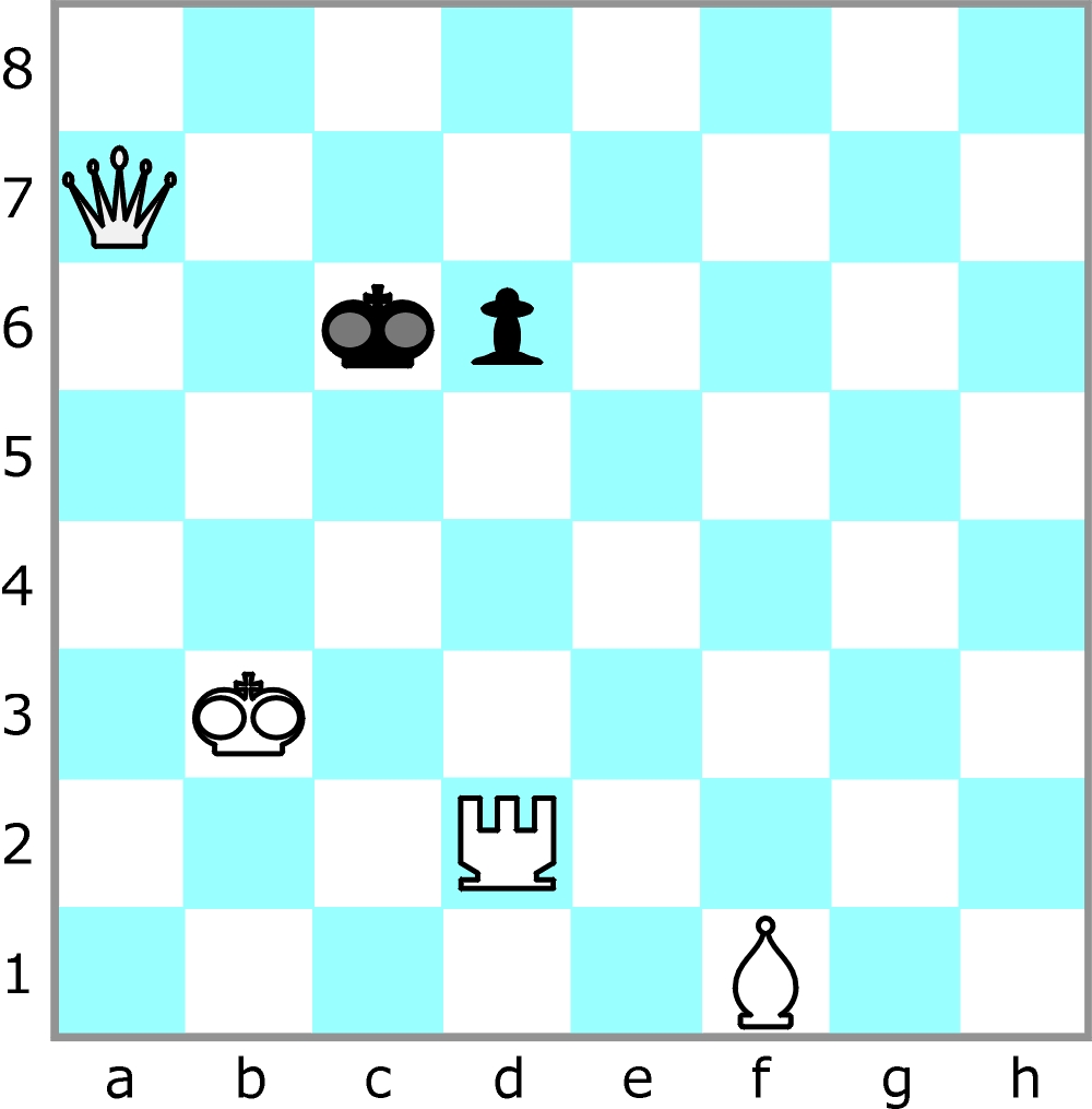 Zaczynają białe i drugim posunięciem matują czarnego króla. Jako rozwiązanie wystarczy wskazać pierwszy ruch.