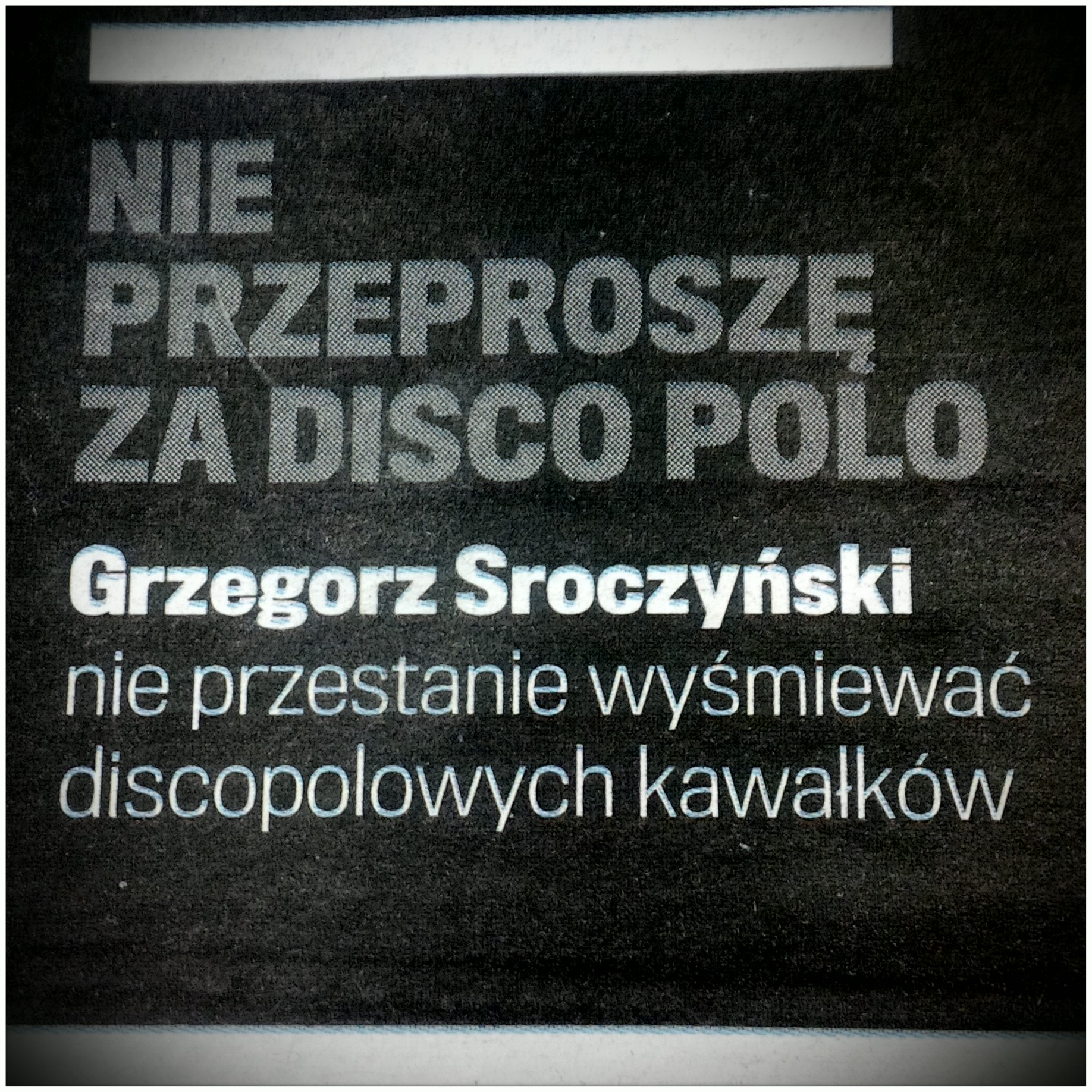 Nowy wymiar mody na disco polo (700 tys. osób na filmie, który już tu krytykowałem) musiał wywołać nowy wymiar zjawiska przeciwnego. Dlatego jako weteran antydiscopolowego podziemia z radością przyjąłem kolejnego stronnika. Co prawda Grzegorz Sroczyński na łamach dzisiejszego „Dużego Formatu” nie dokłada filmowi, ale trzeźwo ustosunkowuje się do zjawiska bełkotu na temat rosnącej aprobaty dla […]